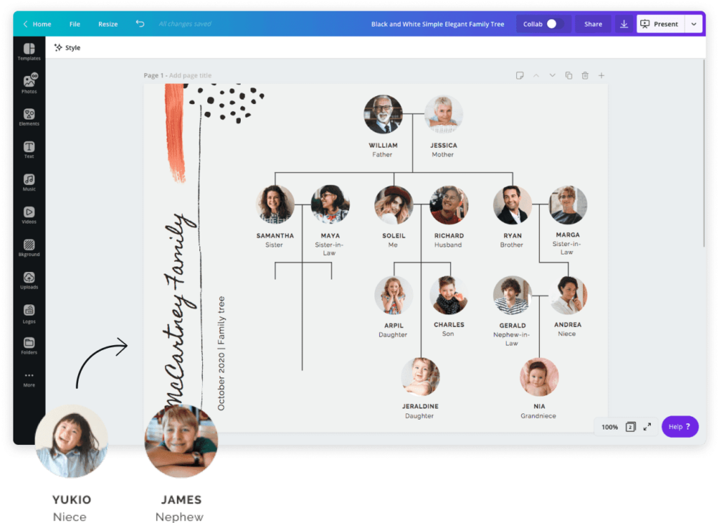 Du kan downloade vores unikke skabelon til stamtræer, som gør det nemt at visualisere din familiehistorie. Uanset om du er en ivrig slægtsforsker eller blot ønsker at organisere dine familiedata, tilbyder vi en række elegante og brugervenlige skabeloner. Med titler som Stamtræ ud af hænder og Mit stamtræ kan du hurtigt skabe et smukt familietræsdiagram. Vores skabeloner er designet til at fungere perfekt med MyHeritage og Family tree builder, hvilket gør slægtsforskningen endnu lettere. Download i dag og begynd at udforske din slægtshistorie på en ny og spændende måde. Skab et stamtræ, der ikke blot præsenterer din familie, men også alle de historier, der fortælles gennem generationerne. Tag det første skridt mod at opdage din fortid med vores skabeloner!